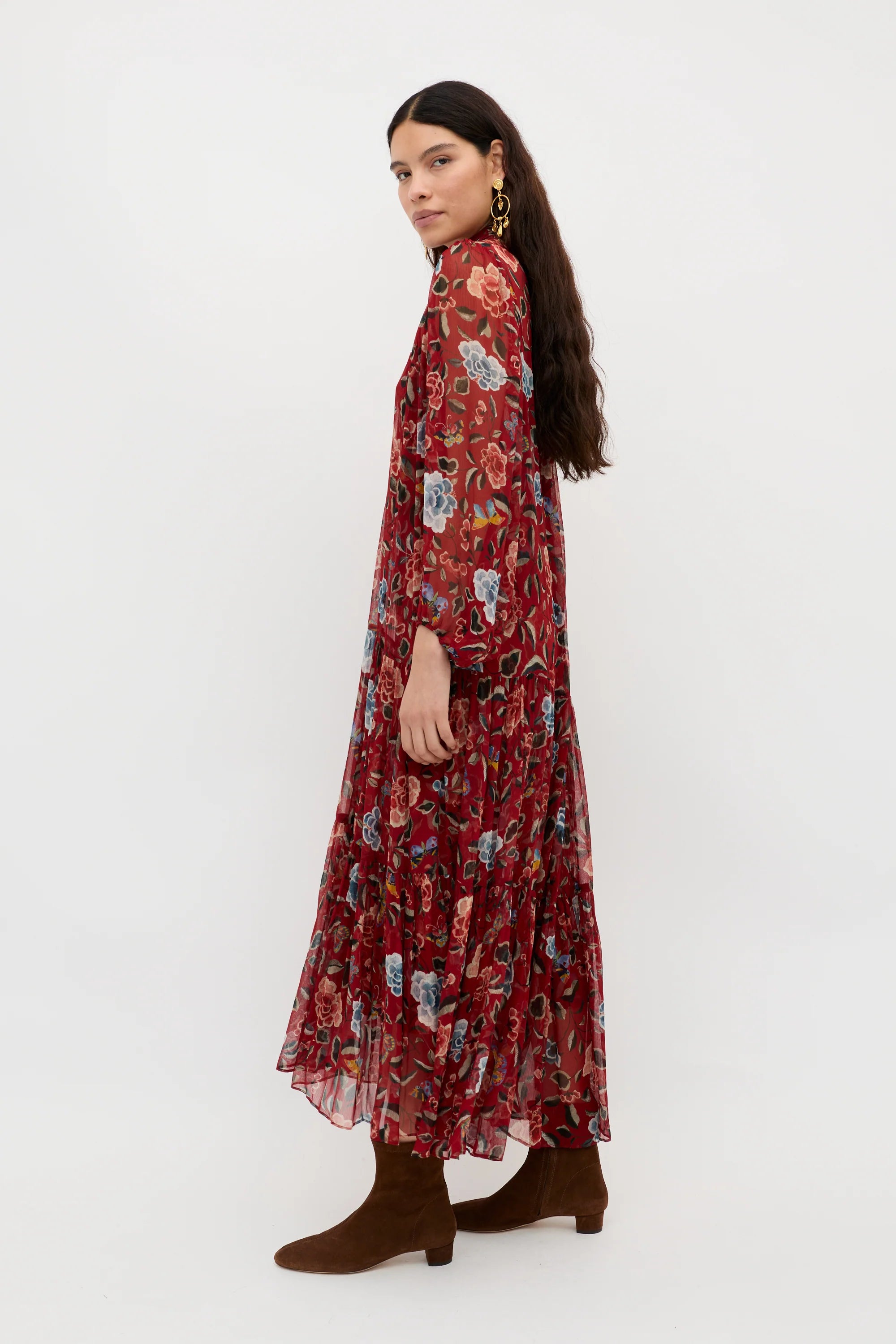 Introducing our Adalind dress, think elevated eveningwear with a glam bohemia spirit. Featuring long statement sleeves, floaty crinkled chiffon and a vintage-inspired butterfly floral print. A romantic and relaxed piece ideal for all your twilight soirees.