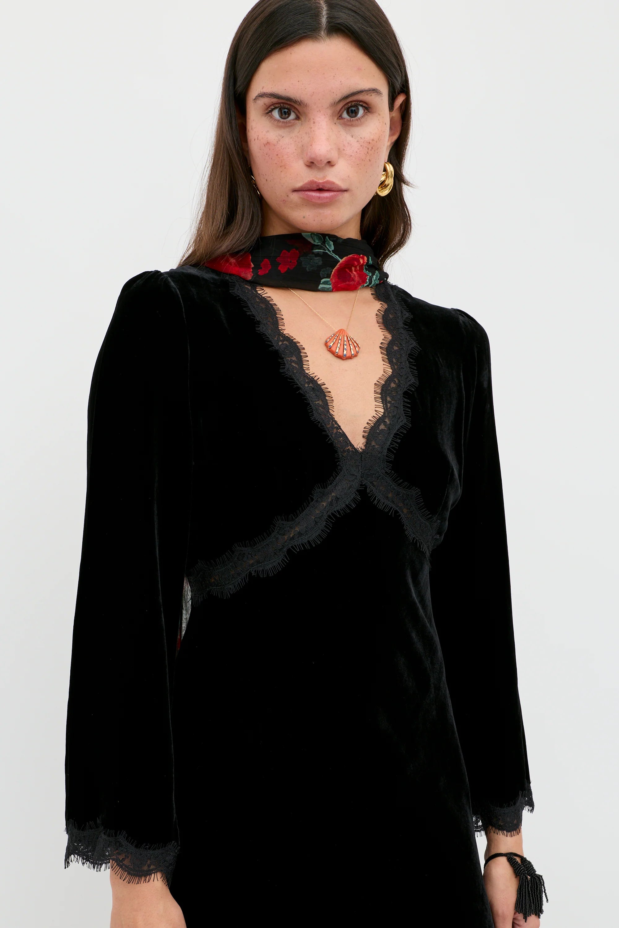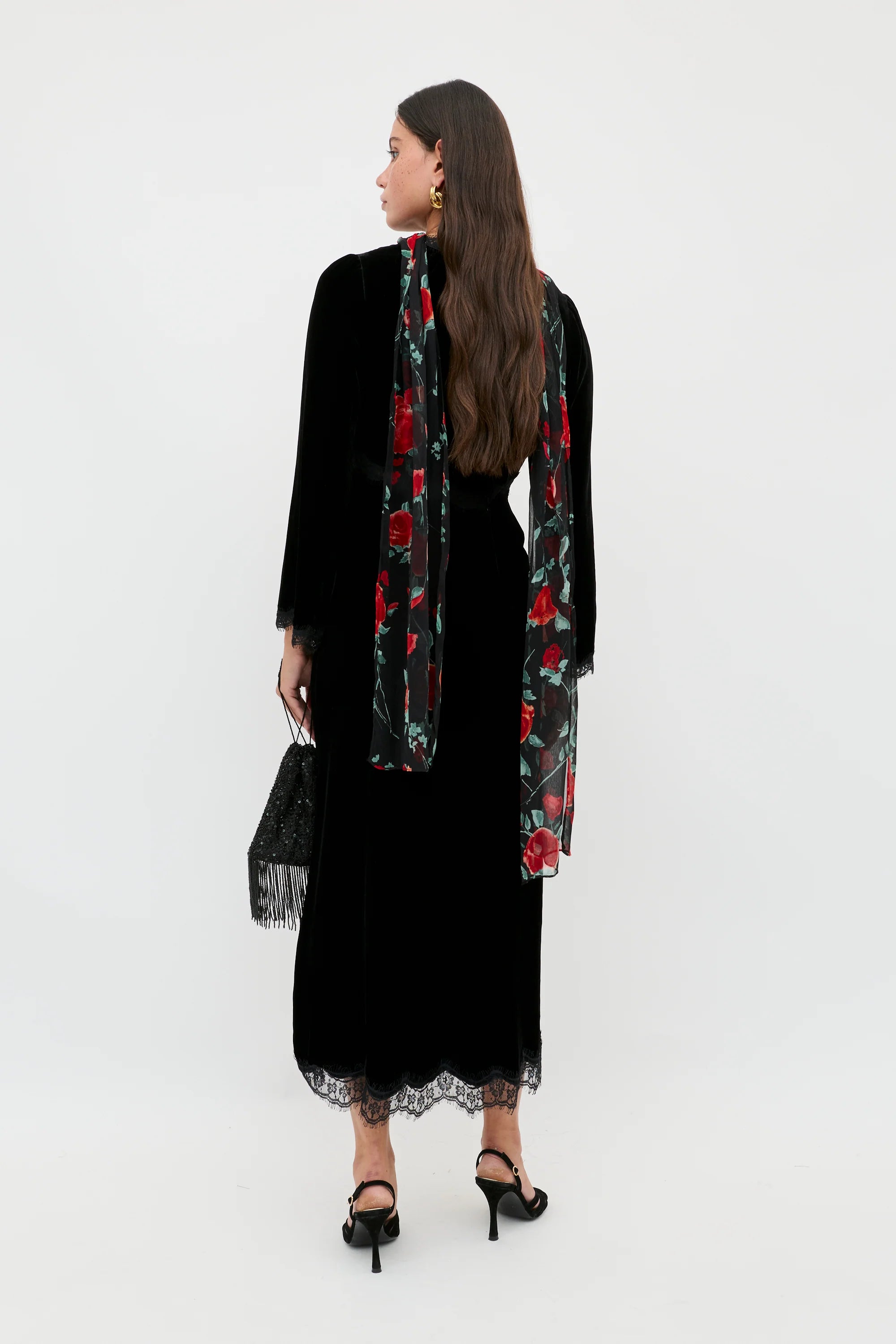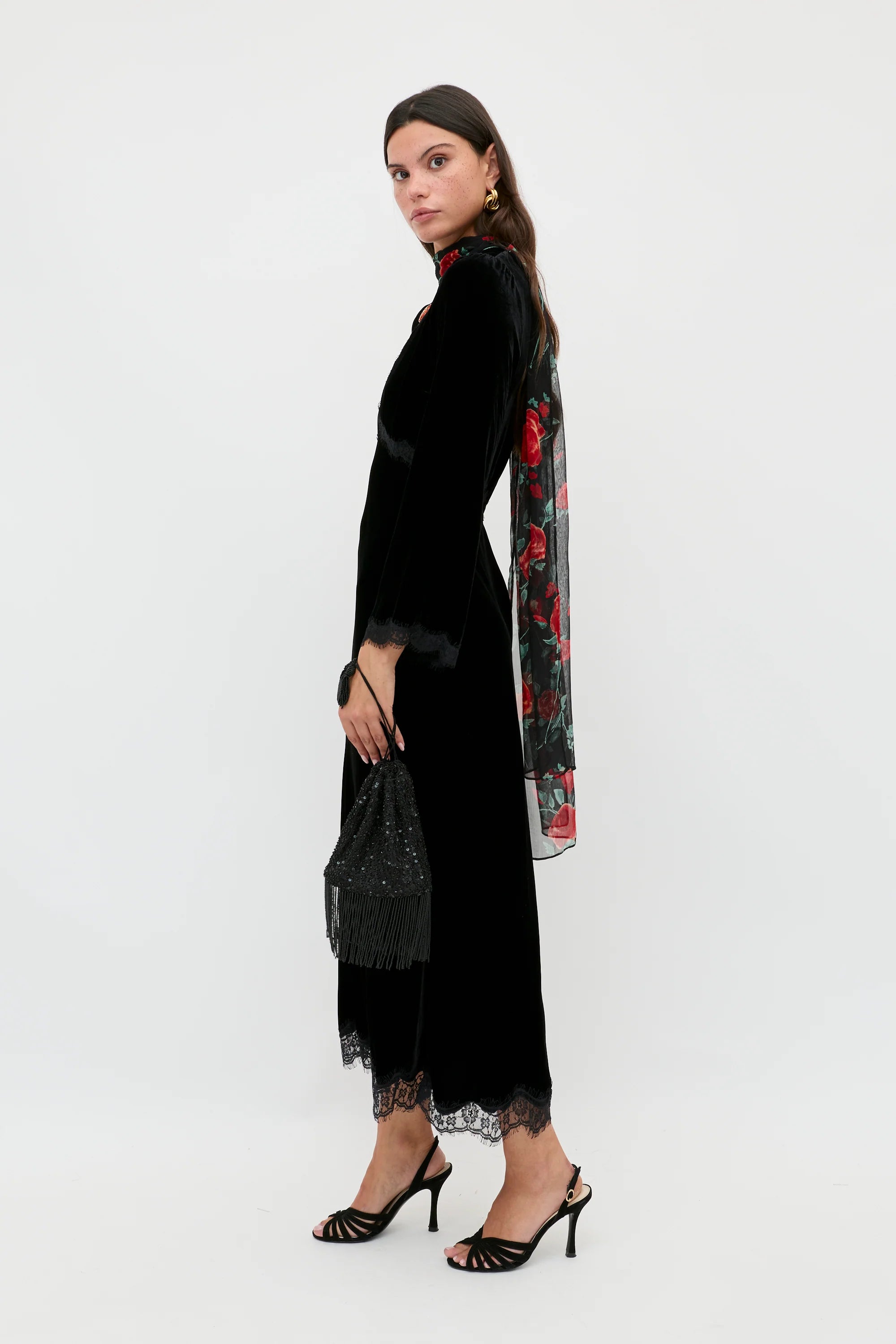 Alessi is where boho-glamour meets dark romanticism. Crafted from luxurious velvet and with delicate lace detailing, it's a beautiful combination of easy-to-wear, sophistication and demure sensuality. Pair it with a pair of statement earrings for a night at the theatre or a romantic dinner.