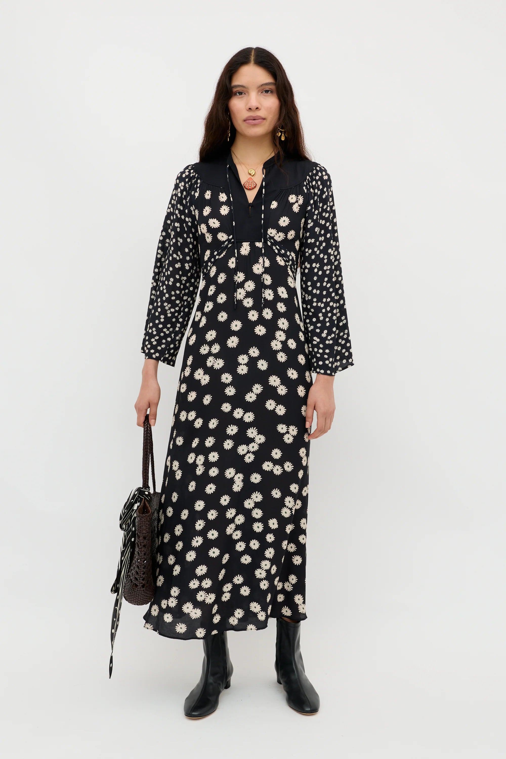 Our Anela is the epitome of relaxed and effortless, boho-elegance. Rendered from a lightweight crepe, it has a beautiful drape. The subtle flared sleeve and playful tie detail are a nod to free-spirited 1970s styles – a perfect dress for easy, everyday wear.