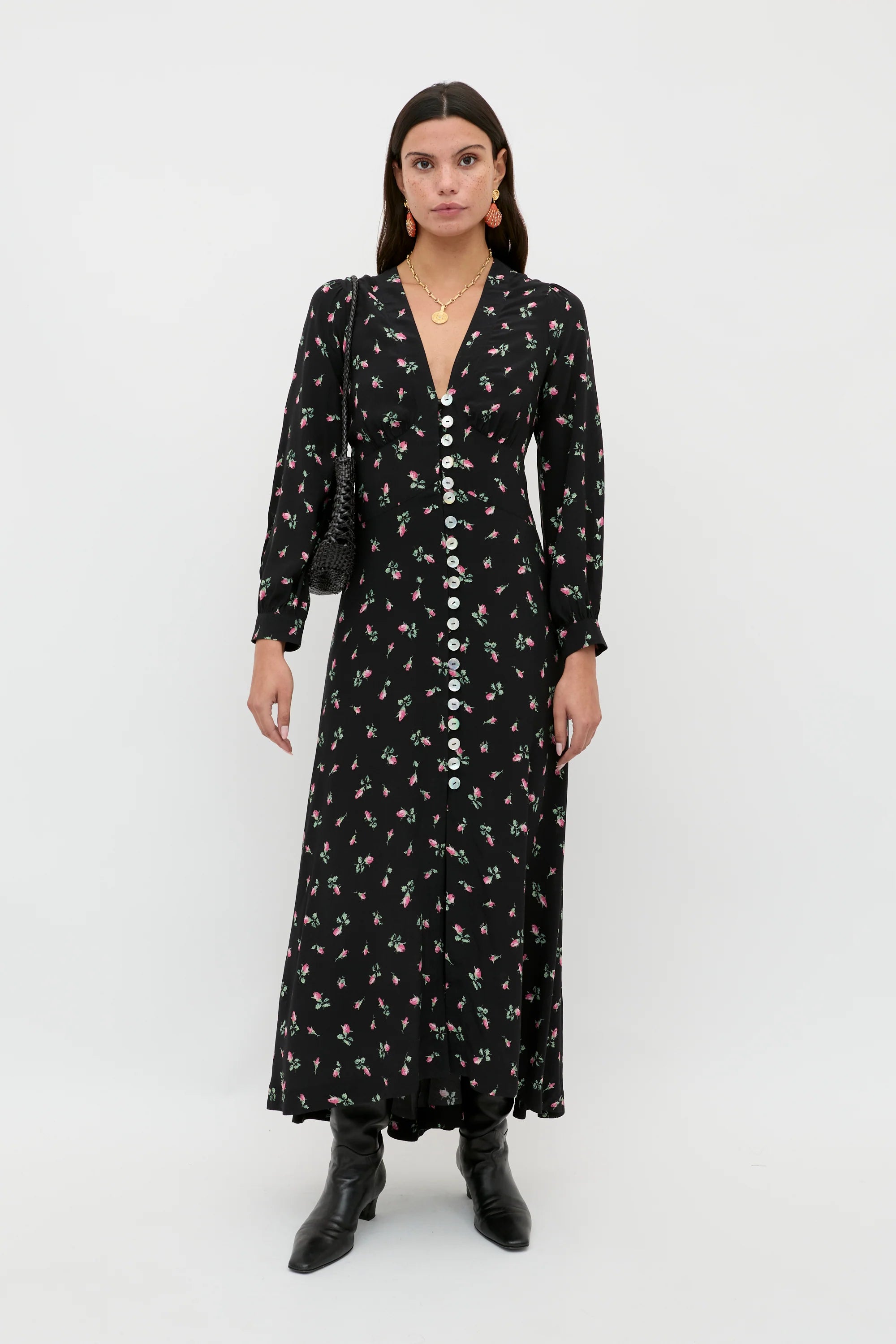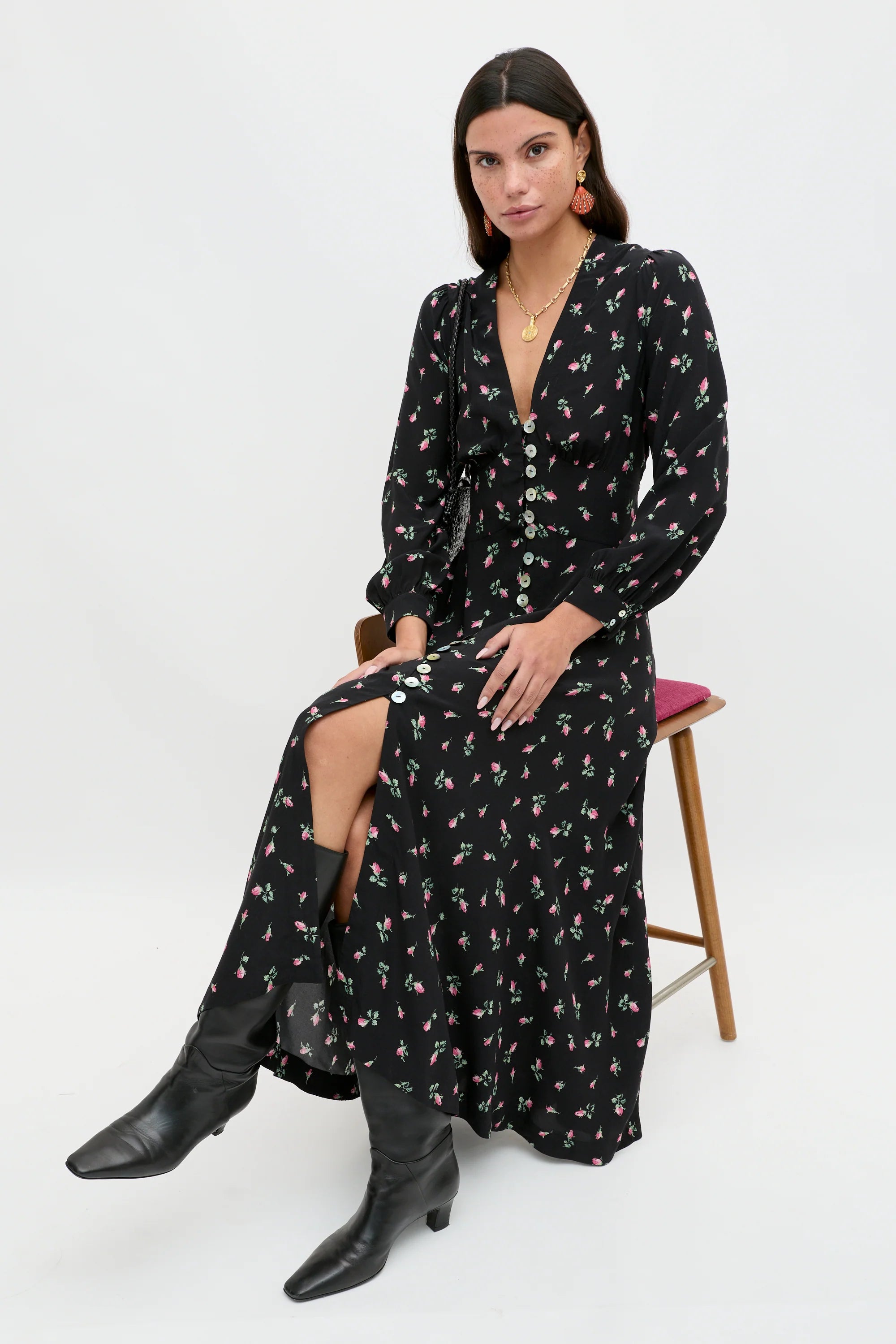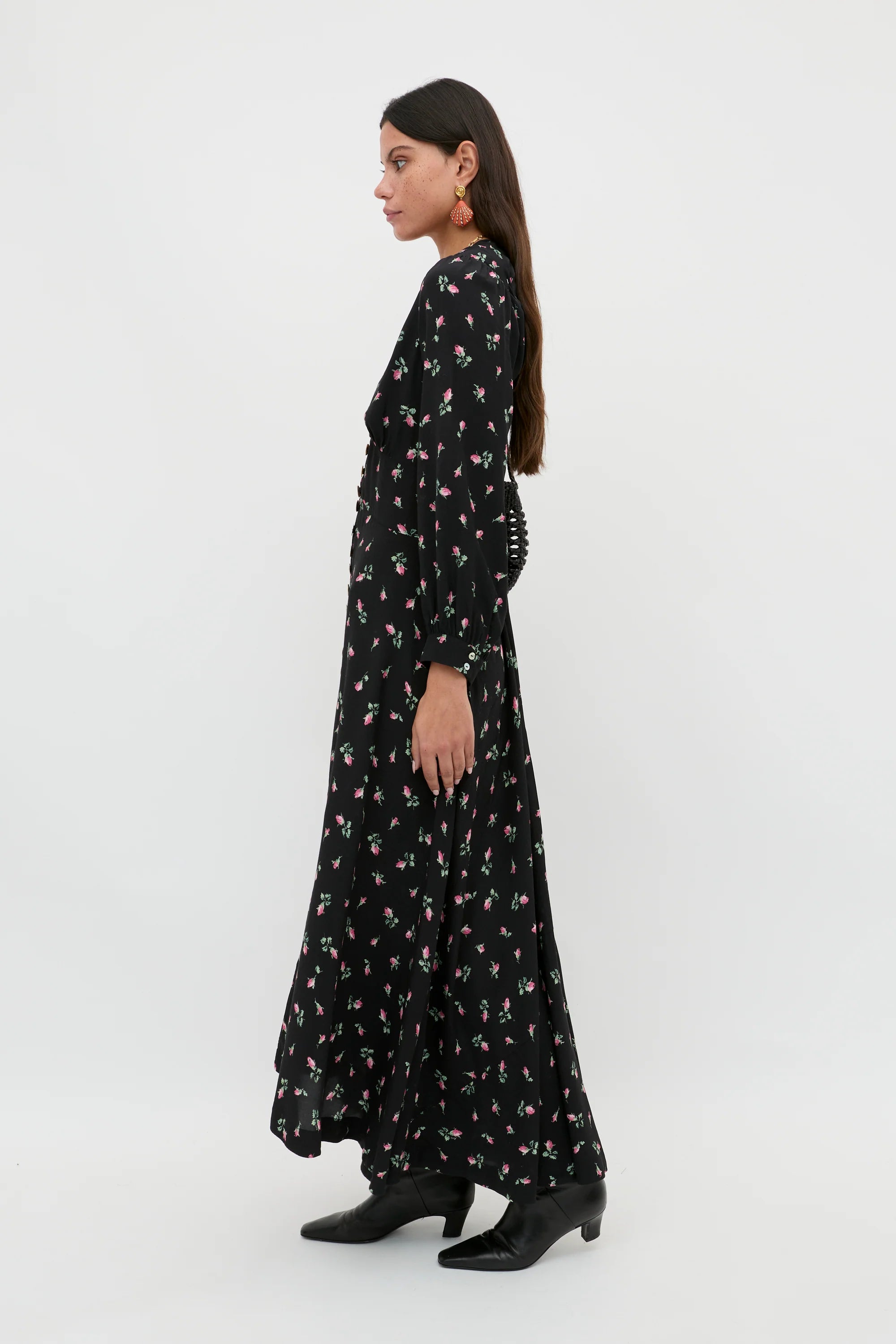 Meet Avalyn. Inspired by our beloved Novara Midi Dress but now with long sleeves and vintage-inspired cuffs that create a beautiful billow at the wrists. Crafted from 100% silk, It's the ultimate button-through tea dress.