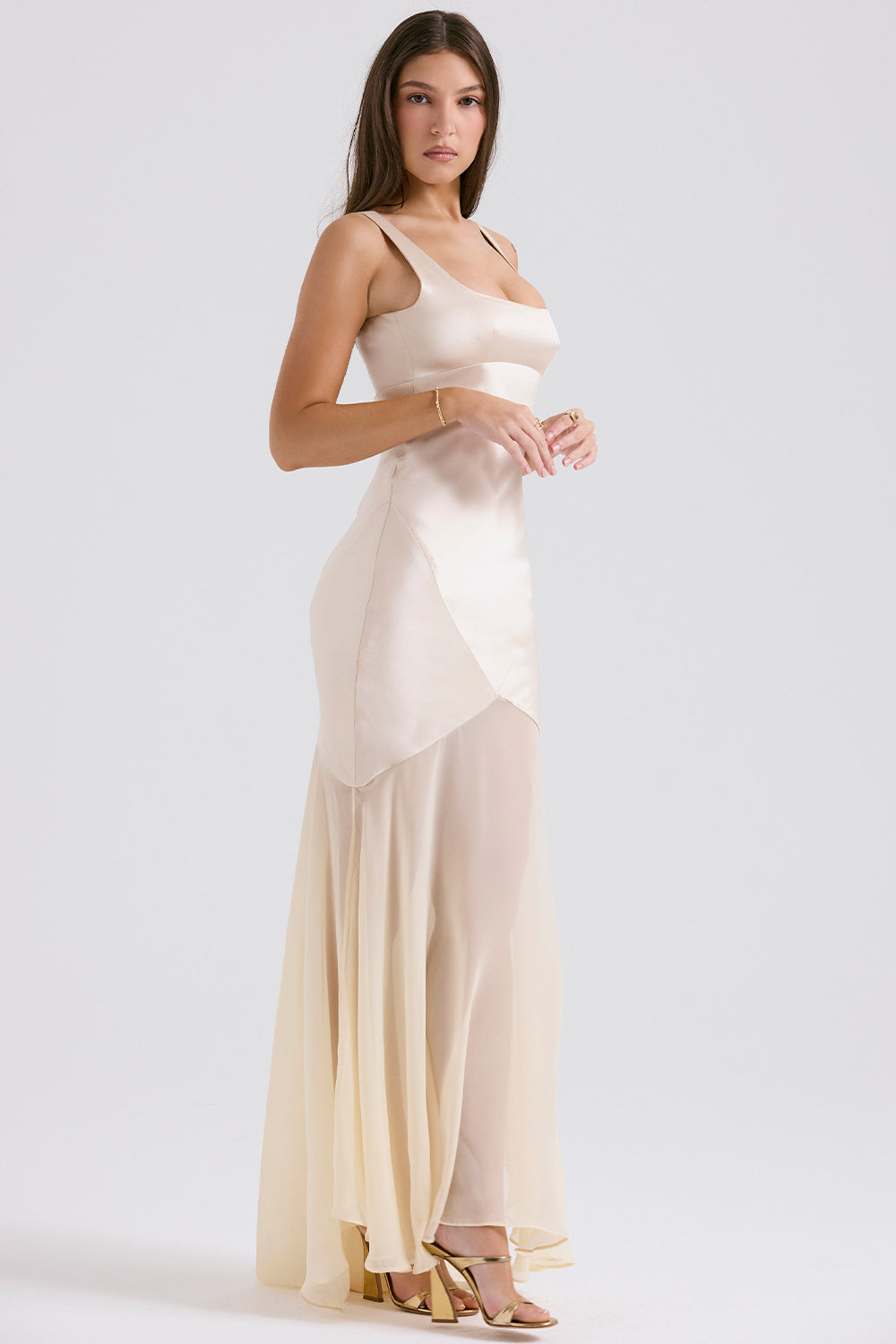 We love to design elegant silhouettes that help you dress for special occasions and our 'Vittoria' gown is exquisite in its design. Made from panels of lustrous heavyweight silky satin, the romantic bodice is framed by elegant shoulder straps and it zips to the back for easy on.