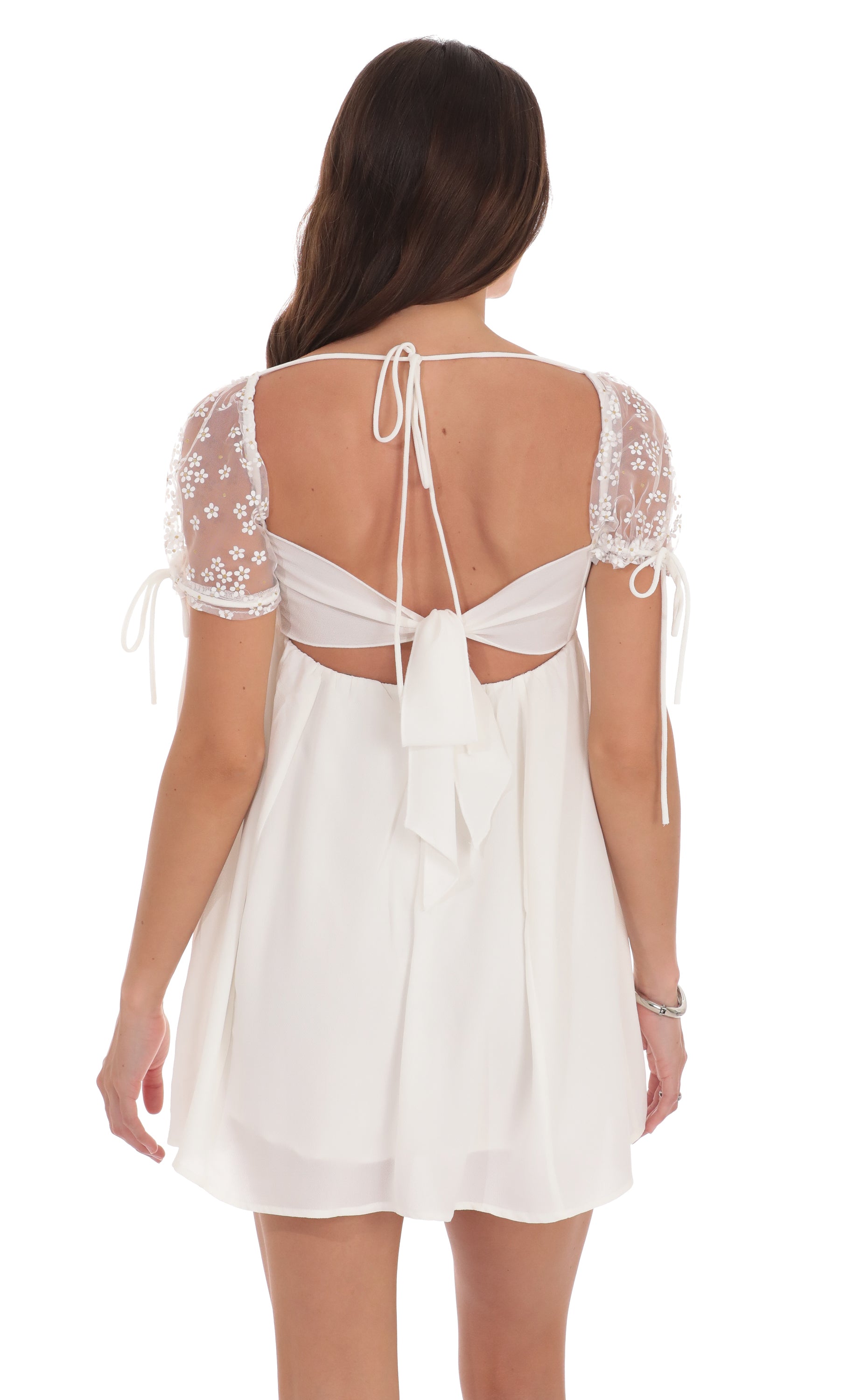 Designed in Los Angeles - Mini Length - Zipper and back tie closure - Fully lined - Sheer - 100% Polyester - Hand wash cold Model is wearing a size small that measures 31in/79cm in length. Please note measurements are taken when style is laying flat. Slight modifications might be made to improve garment quality. Handling the garments with care, hand-washing and air-drying is strongly recommended.