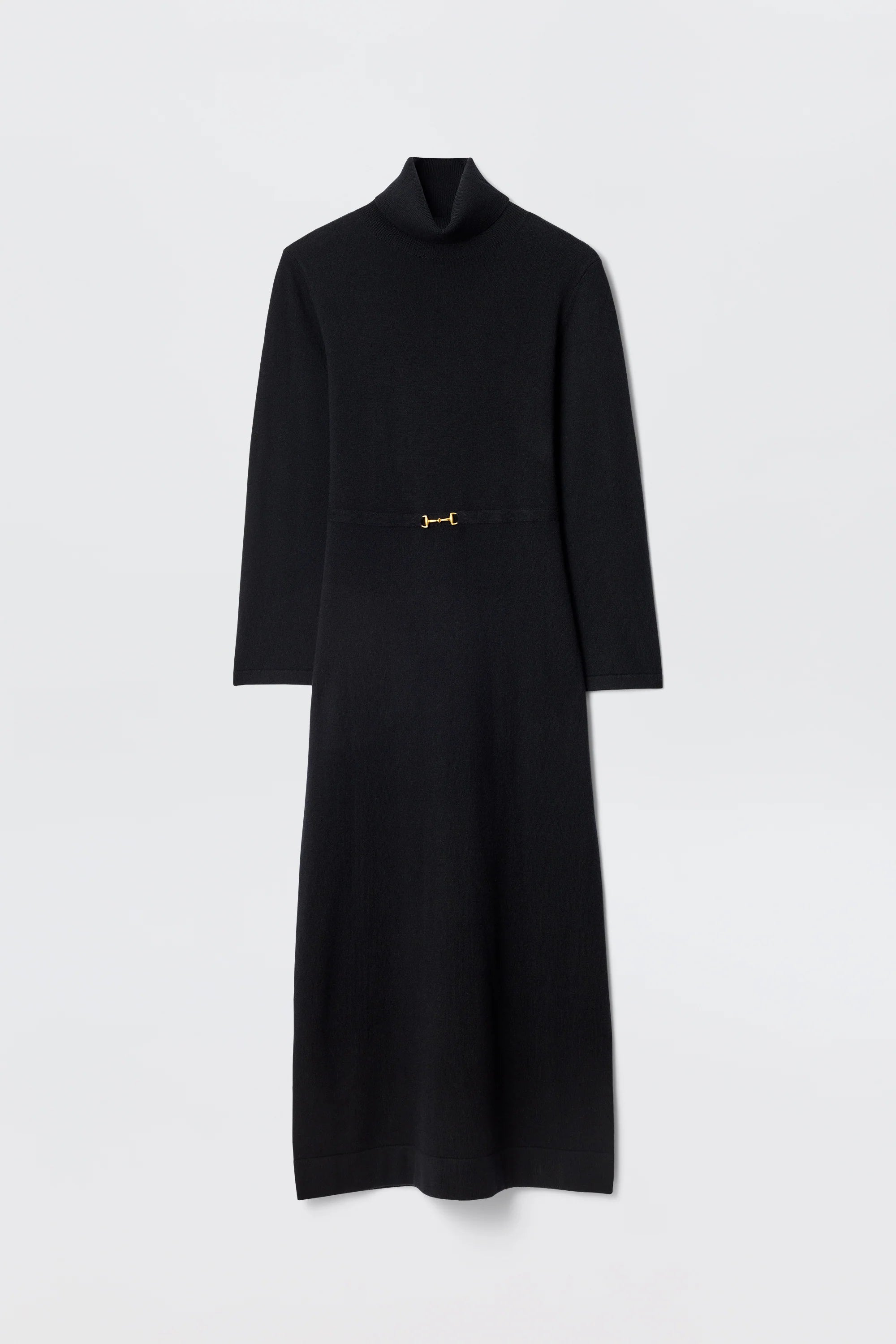 The ultimate knitted dress, Elliette exudes modern sophistication with a sixties spirit. The turtleneck is cosy yet elegant and the subtle volume in the sleeves adds a playful detail to this minimalist style. It comes with a built-in belt, fastened with a muted gold clasp to cinch in the waist. With a pair of Kierna pumps, it's the perfect office-to-afterwork cocktails-staple.