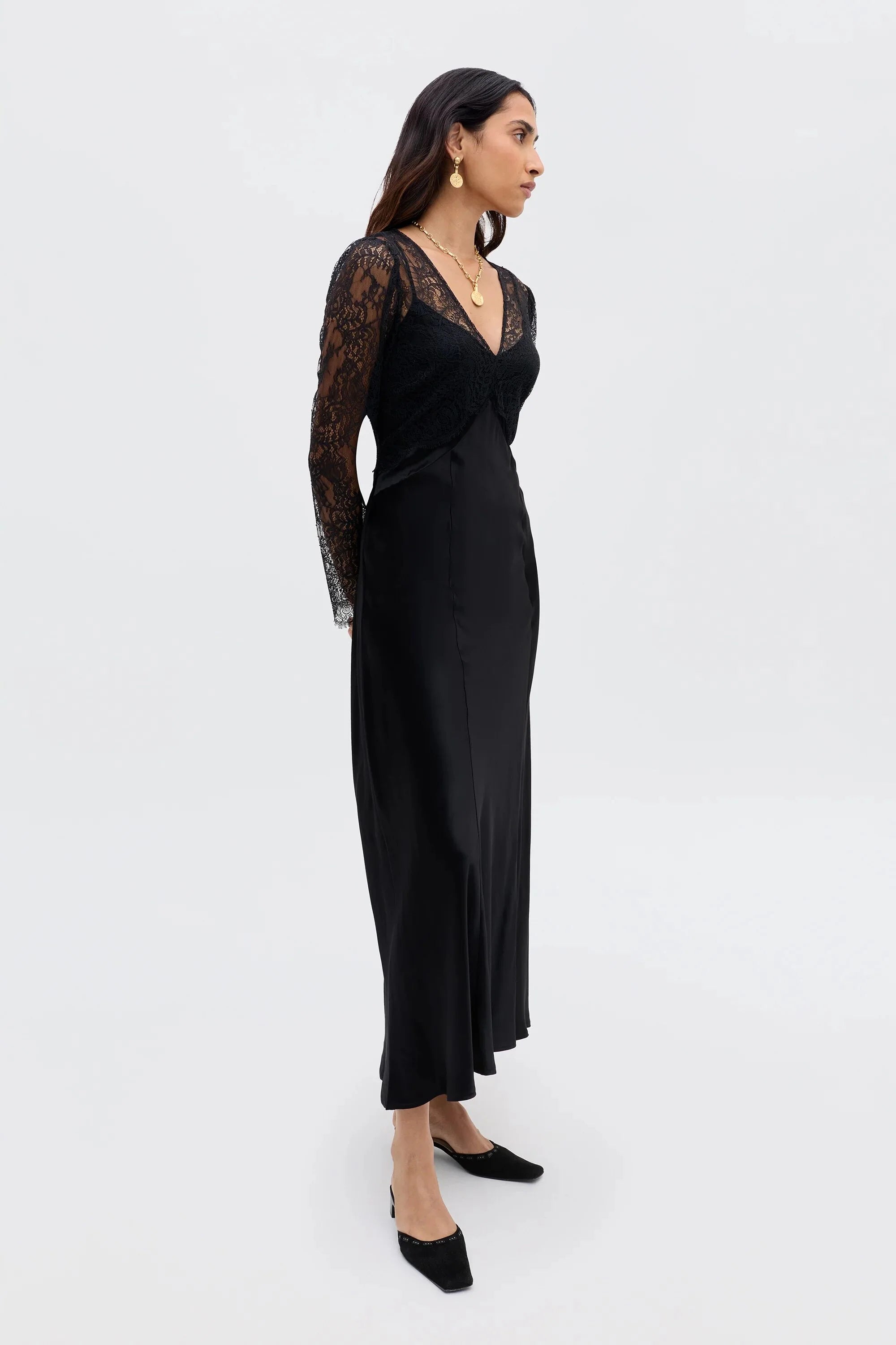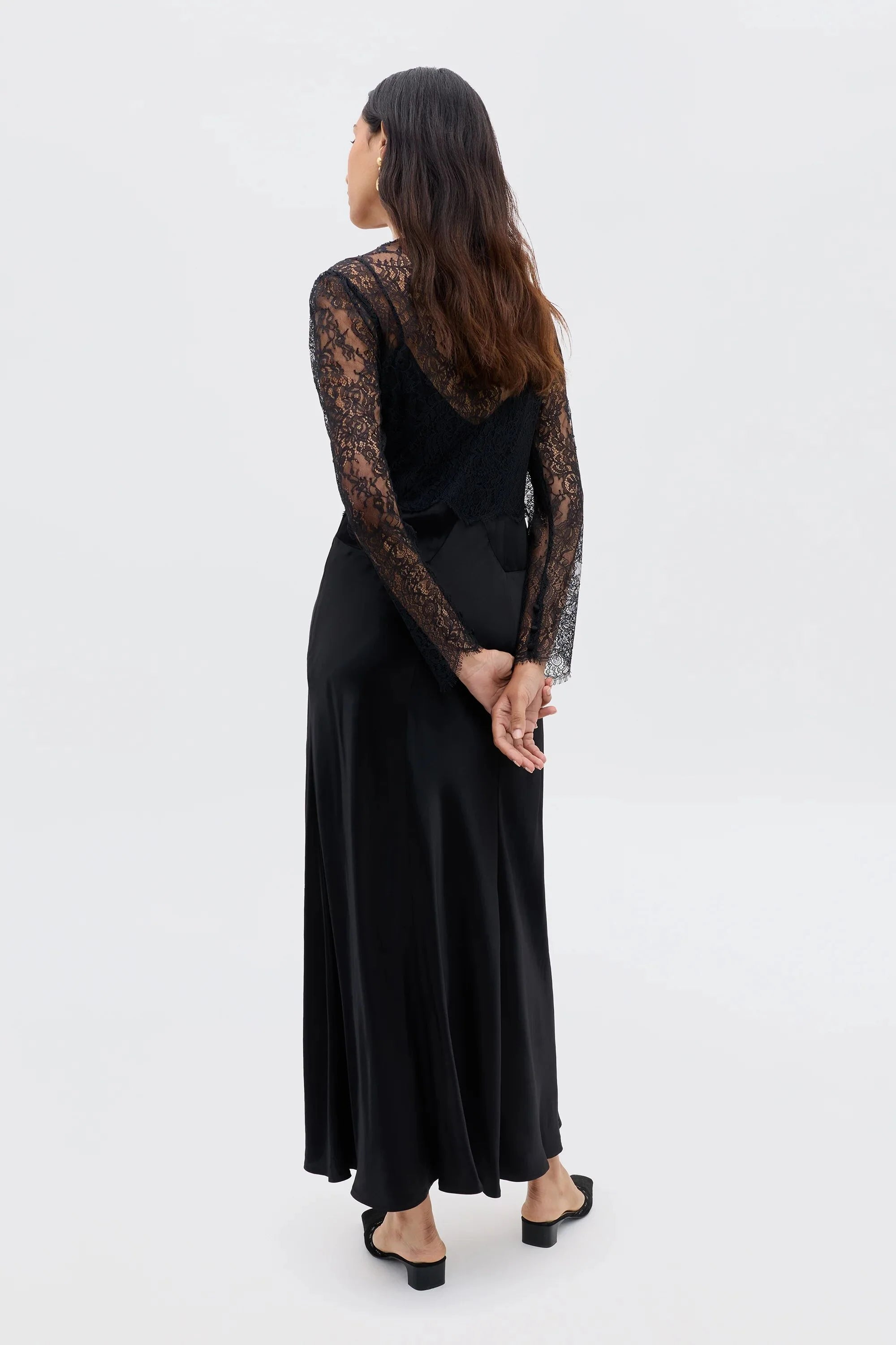 Introducing Laoise: a true vintage-inspired occasion dress. Crafted from slinky satin and lace, it exudes refined elegance.