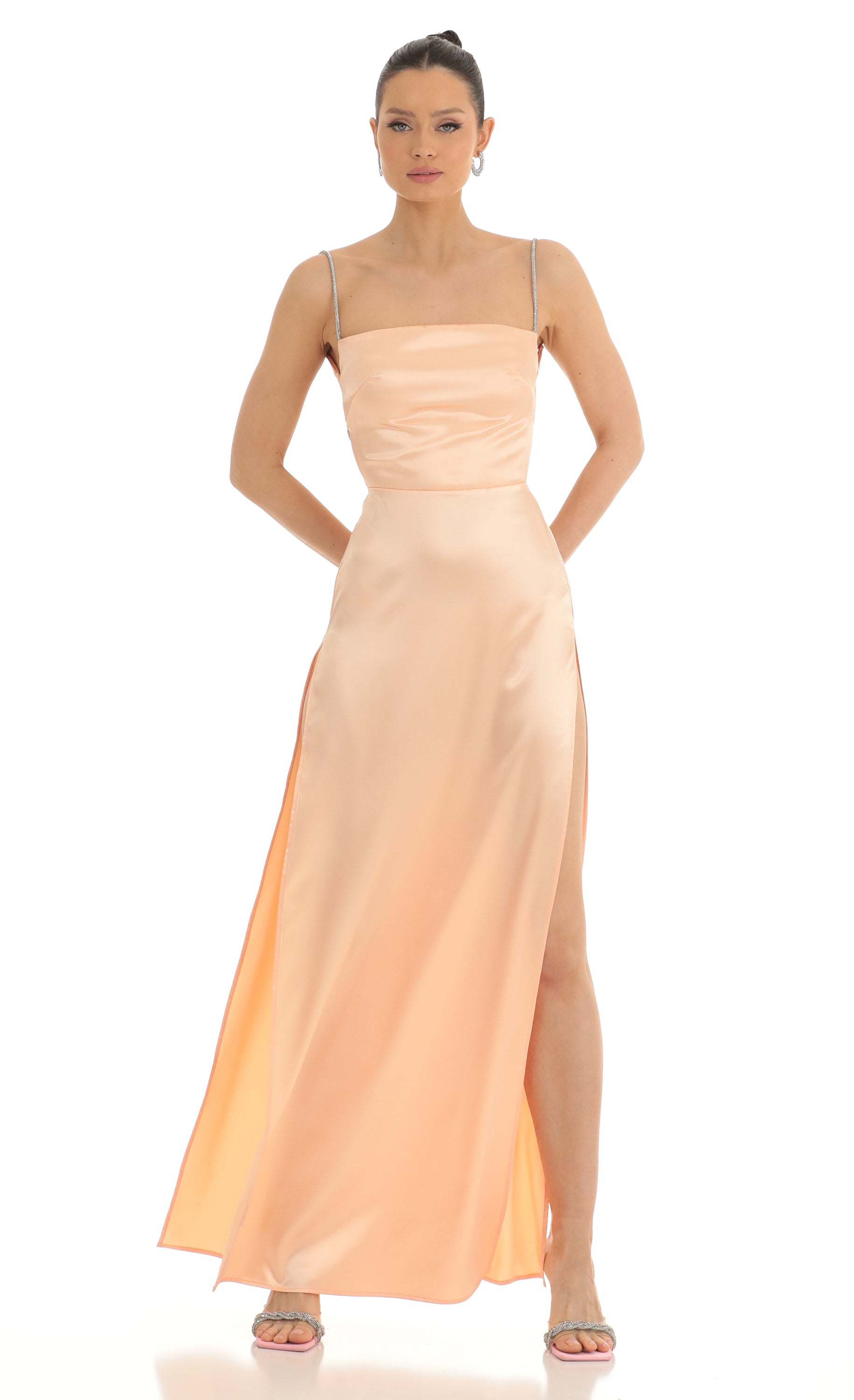 Designed in Los Angeles - Hand Wash Cold - Made in Stretch Poly Fabric - Rhinestone Strap Detailing - Adjustable Straps - Bust is Lined - Dress is Unlined - Dress is Sheer - Zipper Back Closure Length of Dress Measures 57in/145cm All Measurements Are For A Size Small Handling the garments with care, hand washing and air drying is strongly recommended. Slight modifications might be made to improve garment quality.