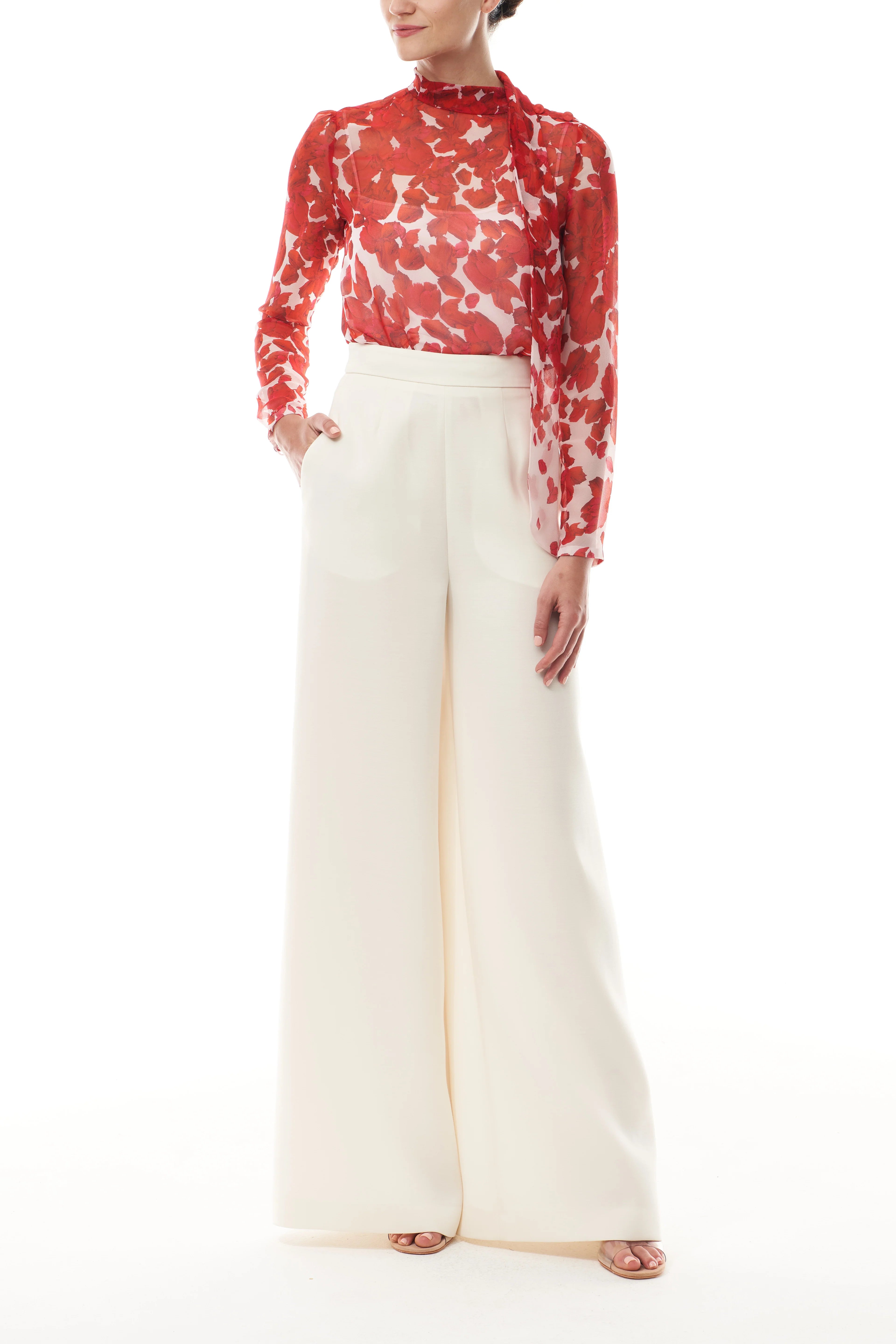 Our Scarf Neck Blouse is a romantic take on a timeless silhouette. Cut from airy Rose Petal Printed chiffon in vibrant Candy Multi, this long sleeve style features a soft, fluid drape and an attached neck scarf that ties elegantly at the collar. Light and graceful, it brings a touch of effortless femininity to any look.