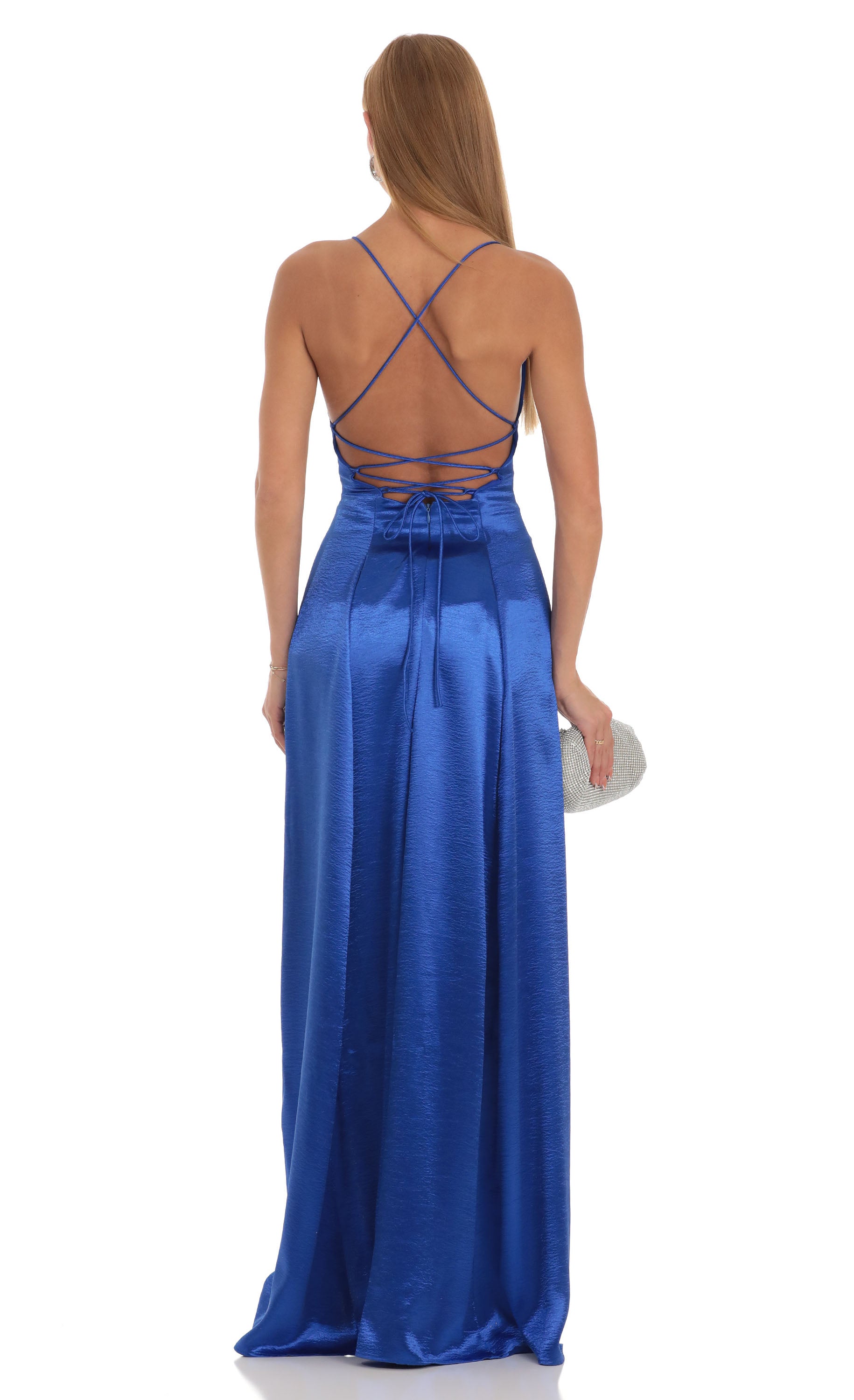 Designed in Los Angeles - Hand-Wash Cold - Made in Crinkle Satin Fabric - Partially Lined - Adjustable Tie Straps - Zipper Back - Double Slit Length of Dress 57in/145cm All Measurements Are For A Size Small Handling the garments with care, hand washing and air drying is strongly recommended. Slight modifications might be made to improve garment quality.