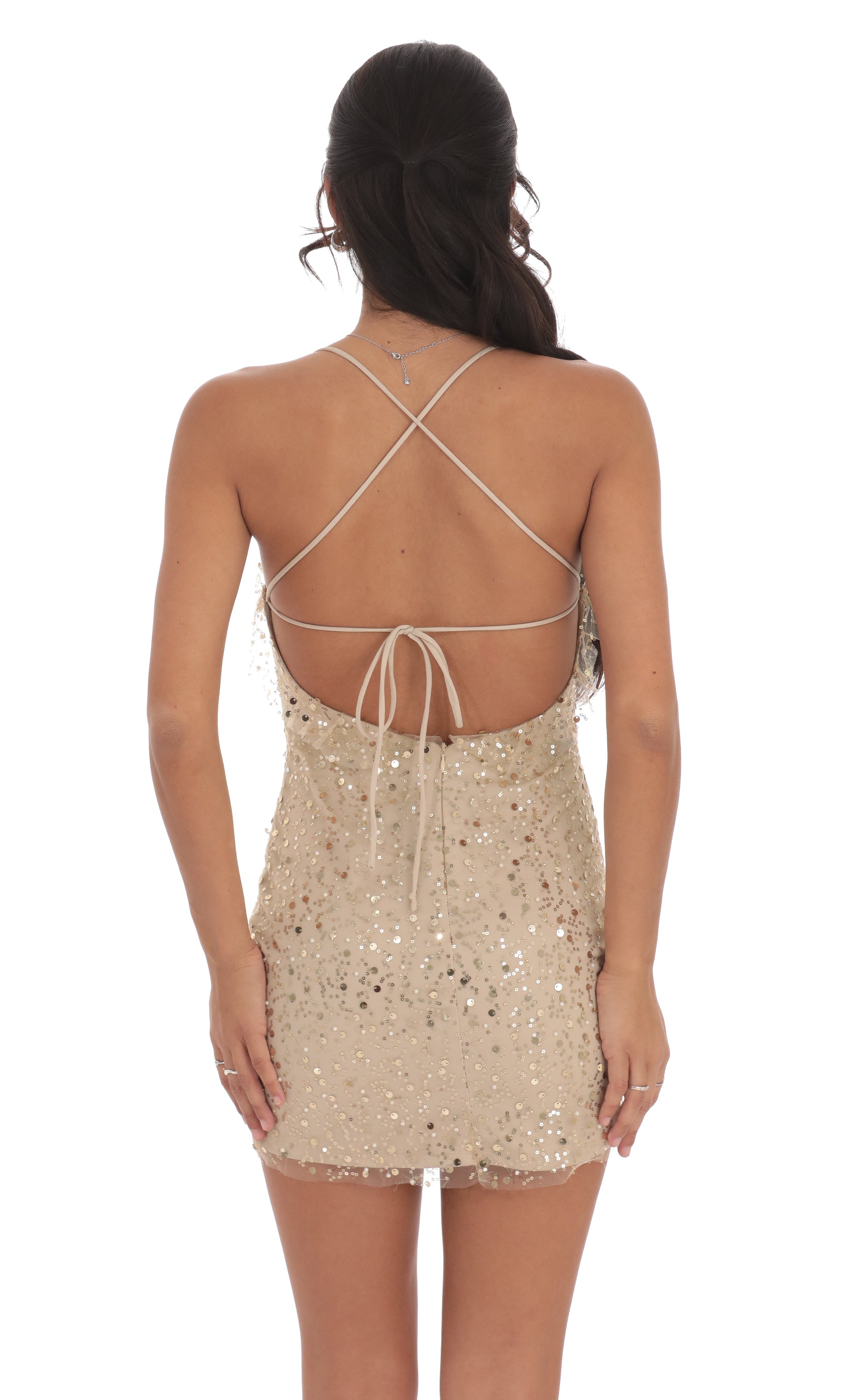Designed in Los Angeles - Mini Length - Zipper and back tie closure - Fully lined - Sheer - Made in mesh sequin beaded fabric - Hand wash cold Model is wearing a size small that measures 31in/79cm in length Slight modifications might be made to improve garment quality. Handling the garments with care, hand-washing and air-drying is strongly recommended.