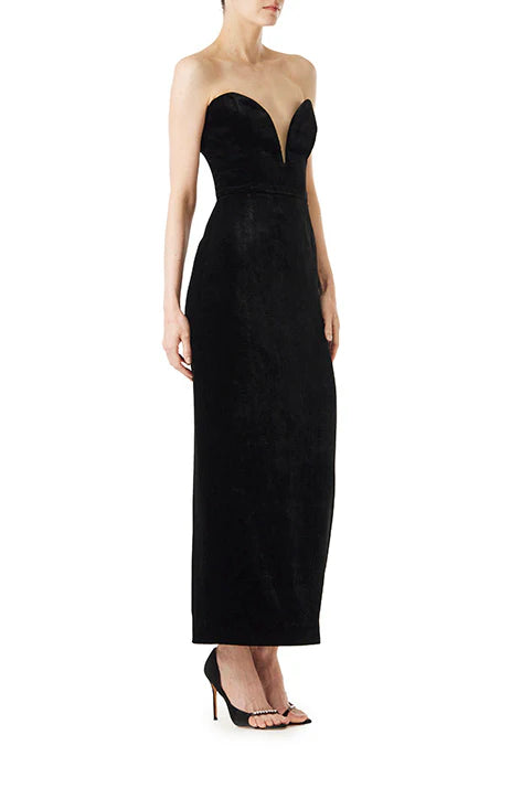 Strapless velvet cocktail dress with deep plunging sweetheart neckline. Pair with the coordinating Puff Sleeve Bolero (sold separately) to complete the look.