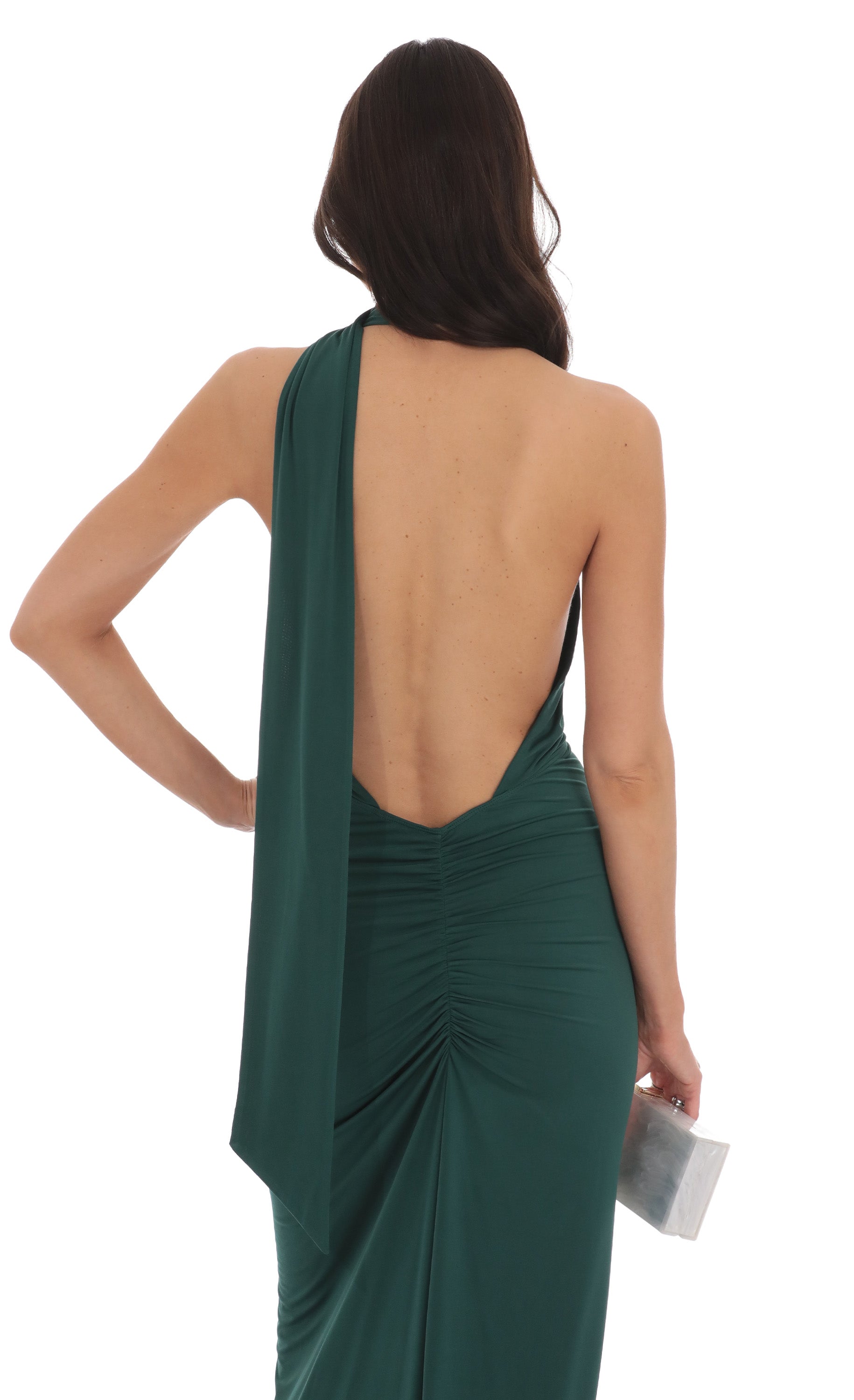 Designed in Los Angeles - Halter Wrap closure - Partially lined - Sheer - Made in Venezia fabric - Hand wash cold Model is wearing a size small that measures 57in/145cm in length Slight modifications might be made to improve garment quality. Handling the garments with care, hand-washing and air-drying is strongly recommended.